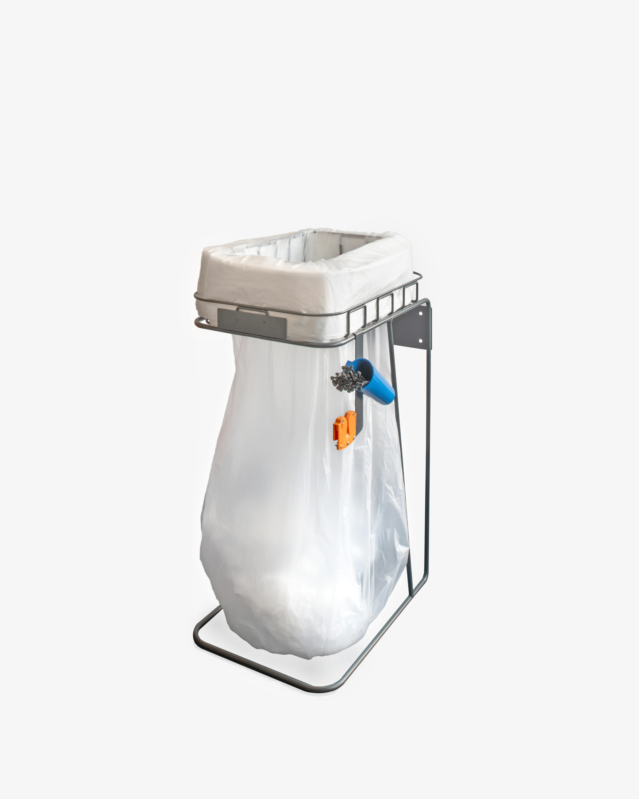 - Freestanding metal frame designed to work with our Longopac continuous liner system
