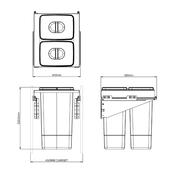 Unisort Essentials 450mm Pull Out Kitchen Cabinet Bin With 2 x 26L Bins