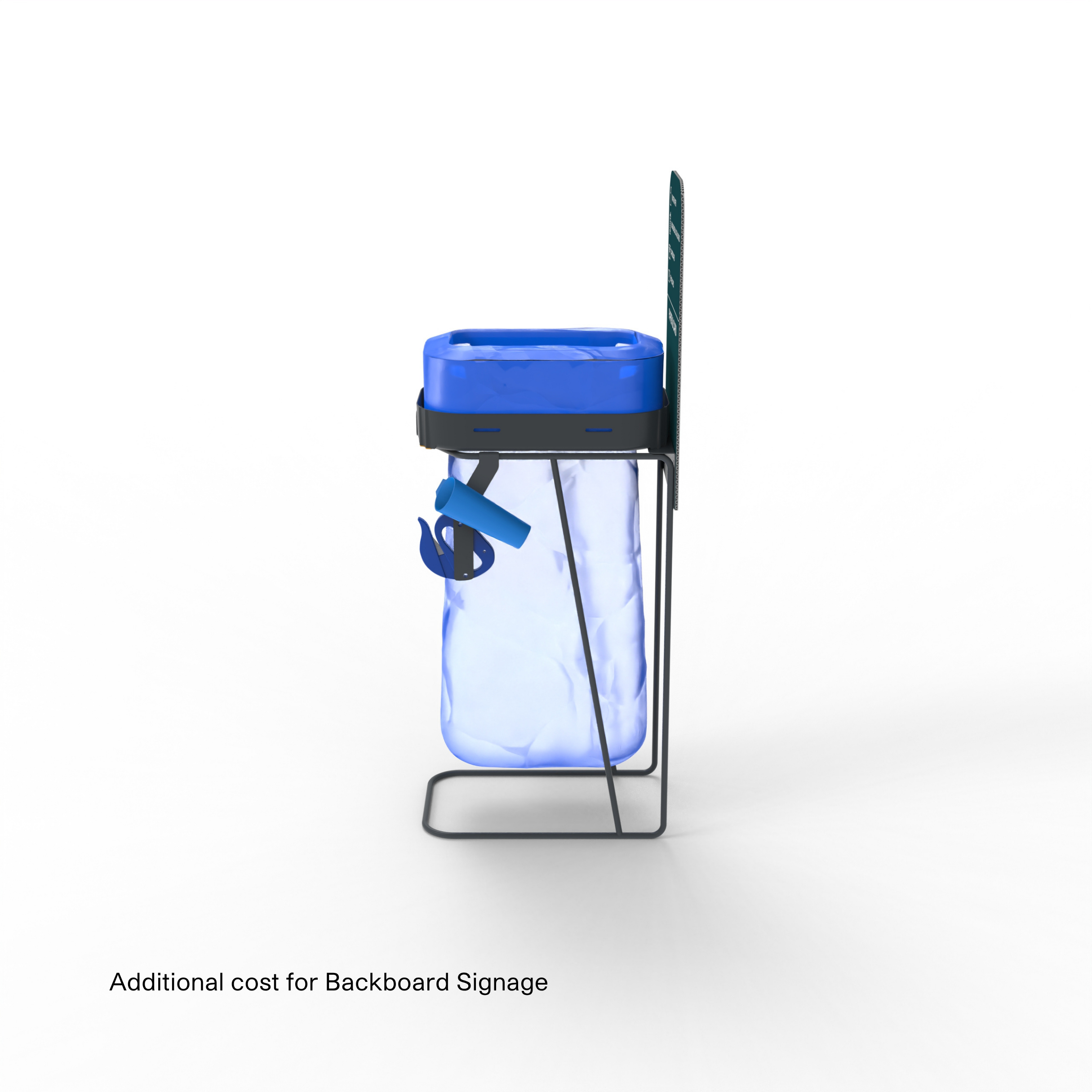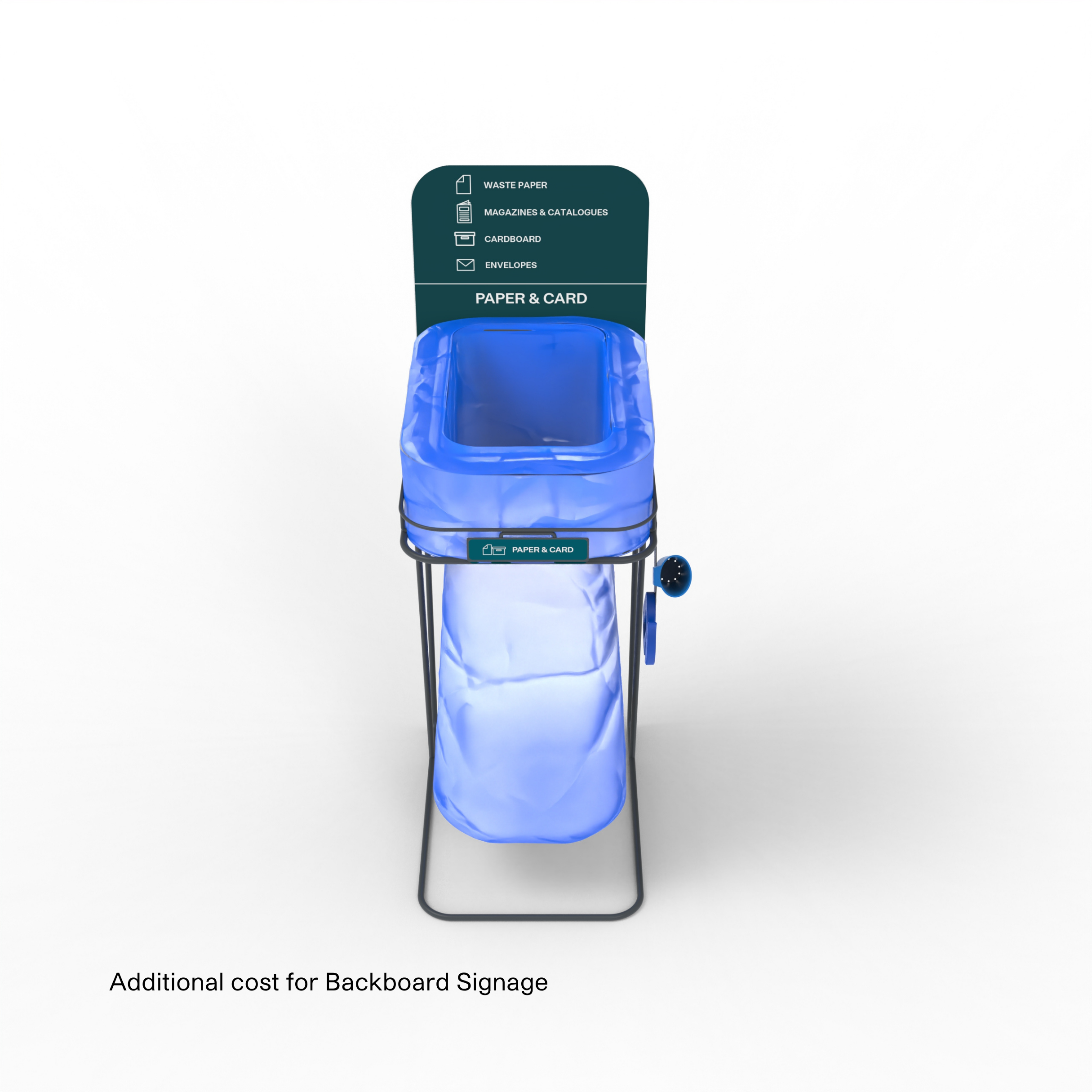 - Freestanding metal frame designed to work with our Longopac continuous liner system